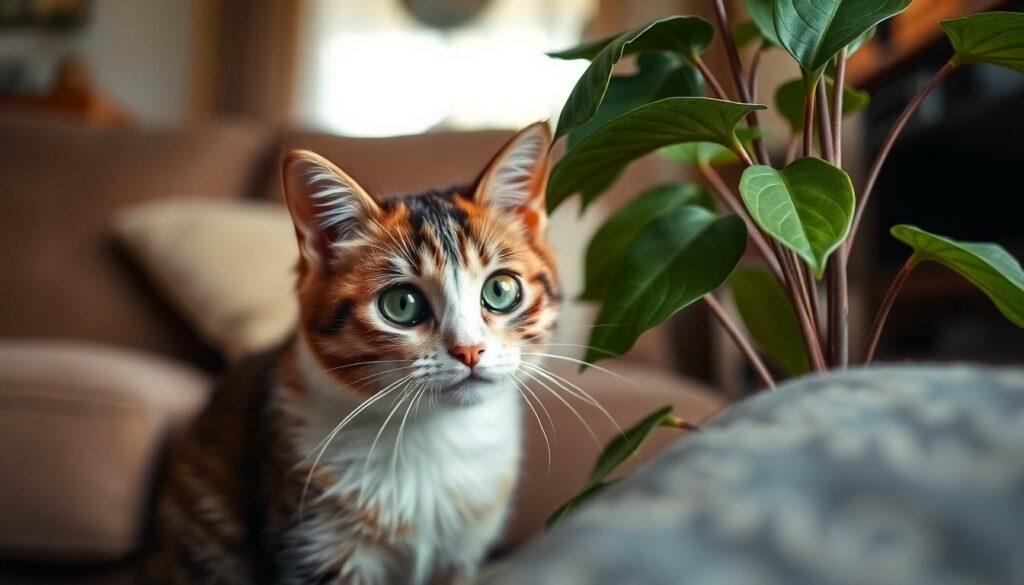 Keeping a cat safe from philodendrons requires proactive measures. Cat owners can implement plant placement strategies and behavioral training tips.